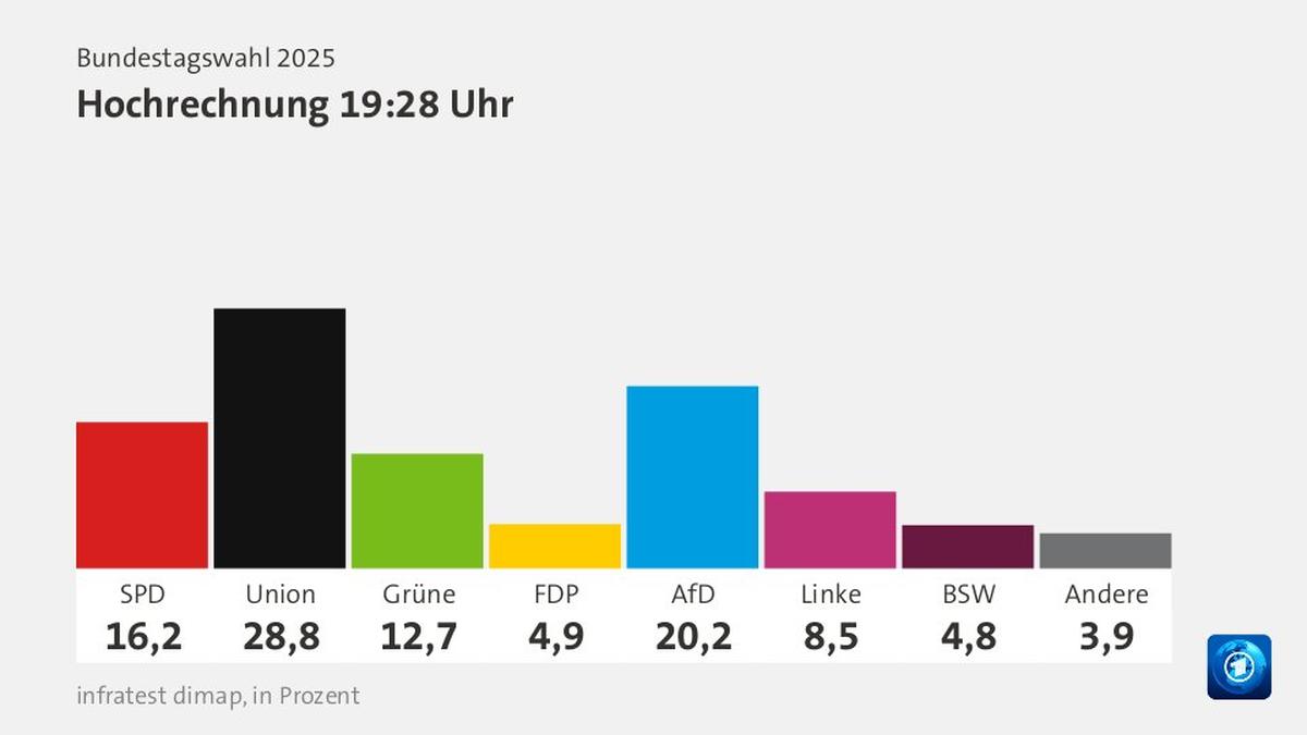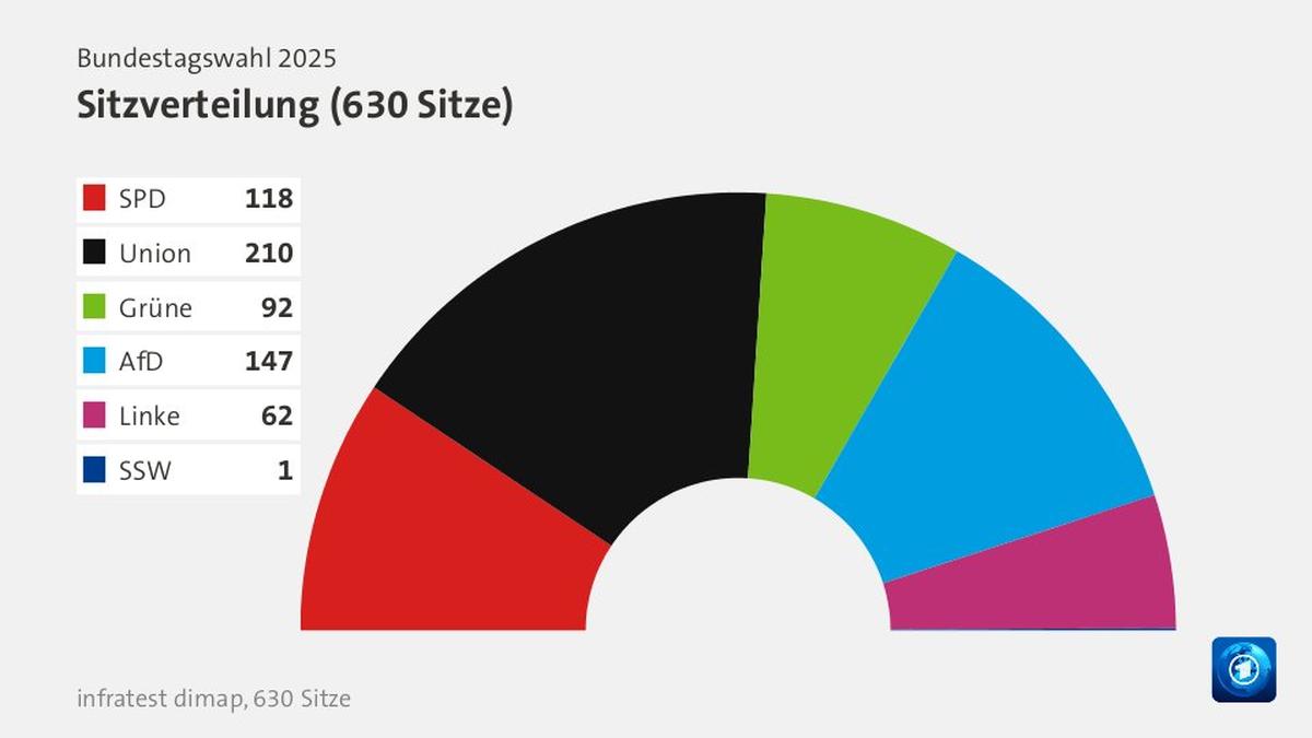 Таким образом, формировать новое правительство будет ХДС/ХСС, возглавит кабинет, скорее всего, Фридрих Мерц. Шольц уже поздравил его с победой. В новом парламенте будет 630 депутатов, поэтому для коалиции нужно собрать более 315 человек. Если результаты экзит-полов будут близки к окончательным, ХДС/ХСС получит 210 мест, ADF — 147, социал-демократы — 118, «зеленые» — 92, Левая партия — 62.